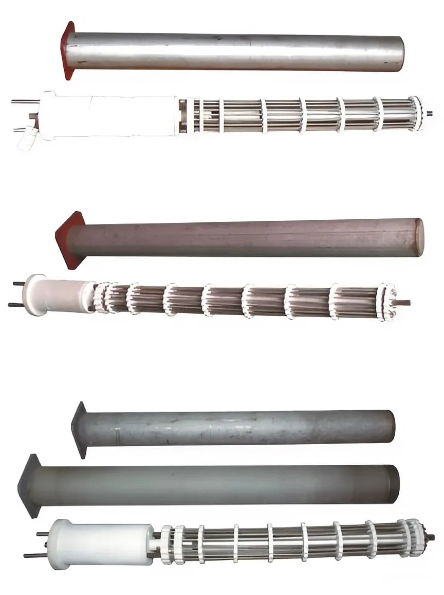Металлические нагревательные элементы патронного типа, рассчитанные на длительный срок службы и безотказную работу. Нагревательные элементы KROSTERM имеют стандартные размеры от 68 до 170 мм (от 2,6 до 6,6 дюйма) в диаметре и могут поставляться практически любой длины. Элементы KROSTERM могут использоваться внутри всех типов излучающих труб или как самостоятельные элементы.
